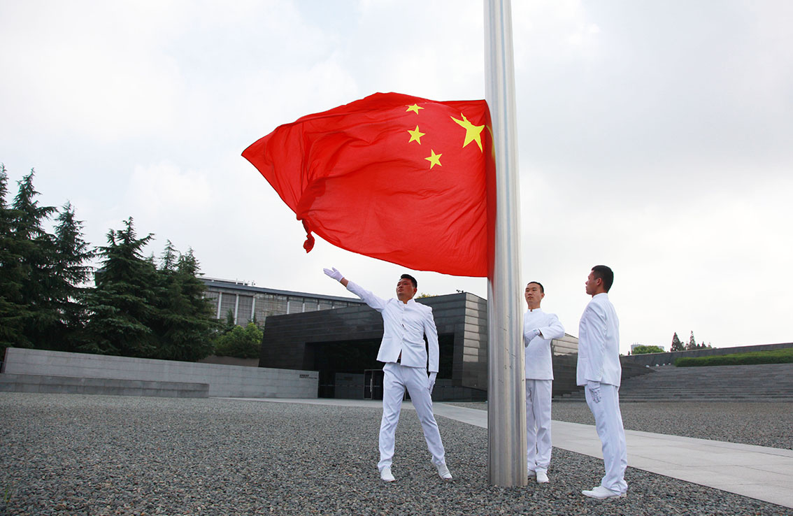 2022年9月18日,江苏省南京市,侵华日军南京大屠杀遇难同胞纪念馆举行升国旗仪式。(图片来源:中新社)