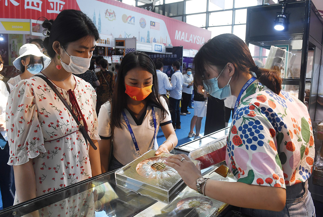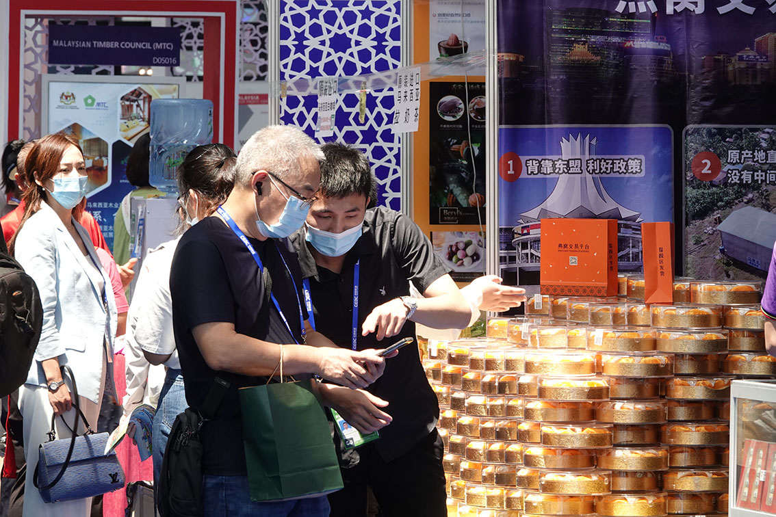 9月16日,在东博会马来西亚国家展厅,观众在选购燕窝产品。(图片来源:本文图片除标注外均自中新社)
