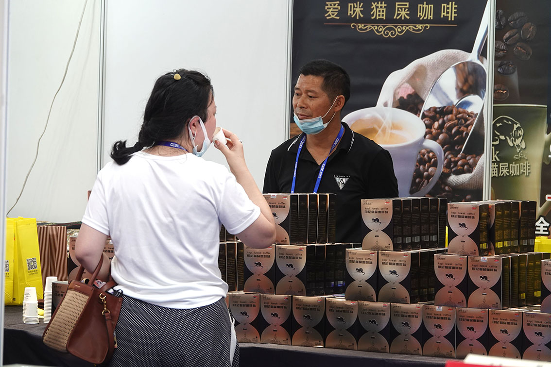 9月16日,在东博会印度尼西亚国家展厅,观众在选购印尼咖啡。