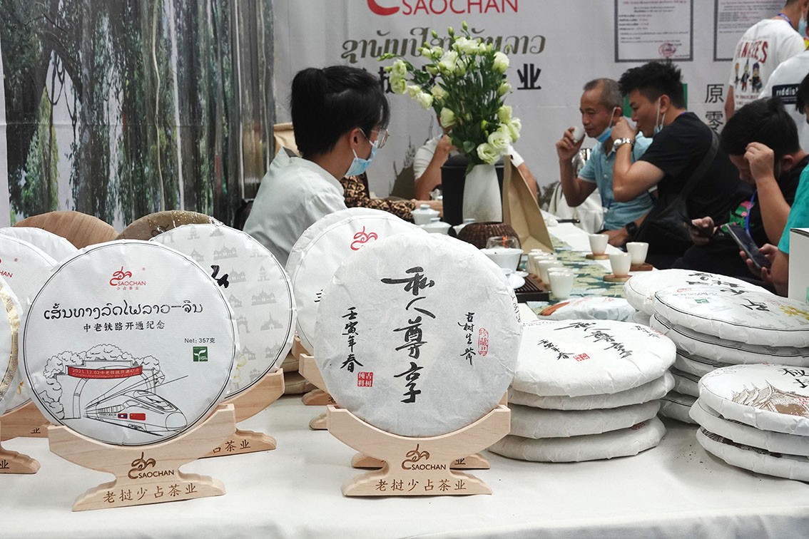 9月17日,在东博会老挝国家展厅,观众在品尝老挝的名优茶。