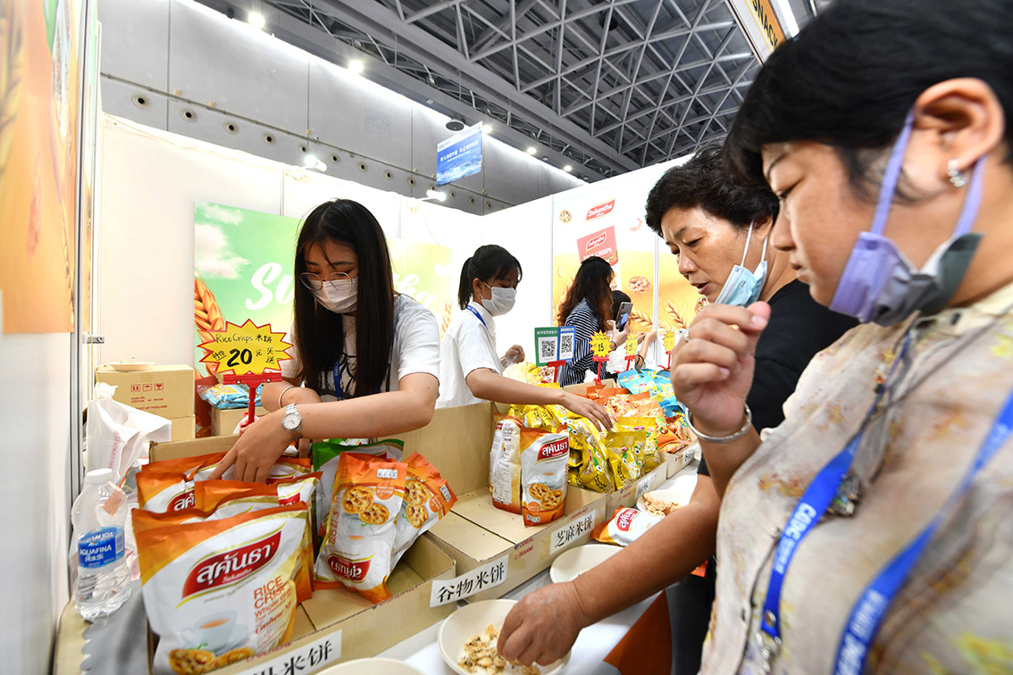 9月18日,在南宁国际会展中心,观众在选购泰国米饼。 (图片来源:新华社)