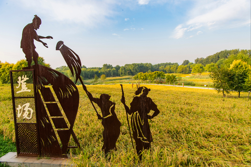 北京公园稻田引人入胜。(图片来源:中新社)