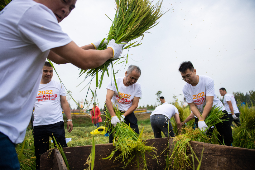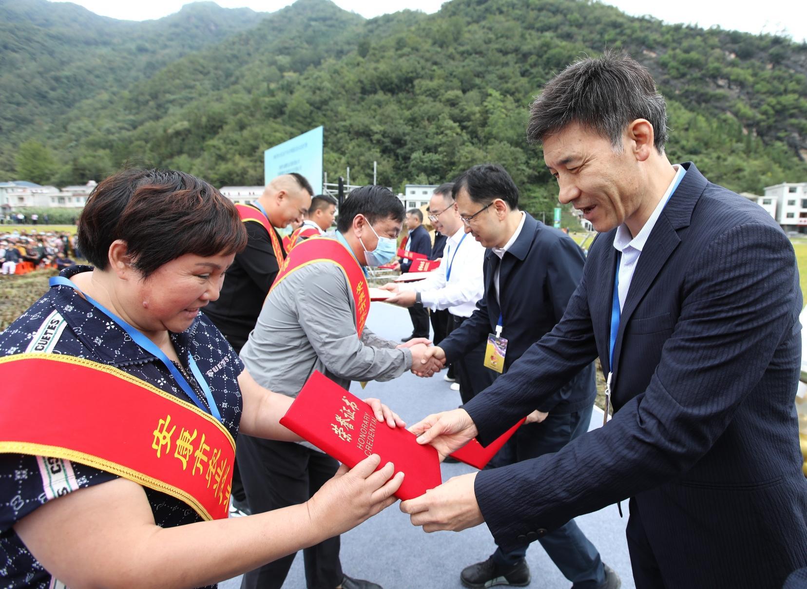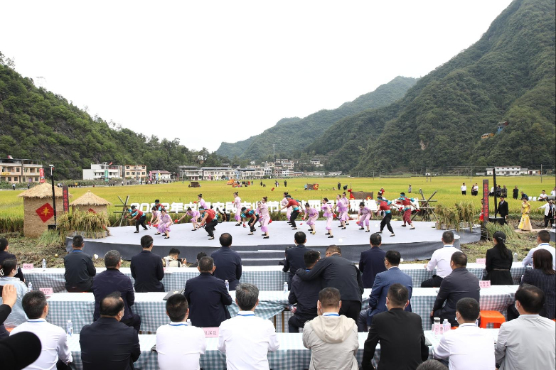 22日,2022中国农民丰收节暨陕西安康稻渔丰收节,在旬阳市仁河口镇水泉坪村隆重开幕。(图片来源:陕西三秦网)