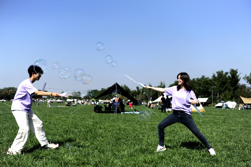 25日,不少西安民众在杜邑遗址公园露营,乐享悠闲周末。