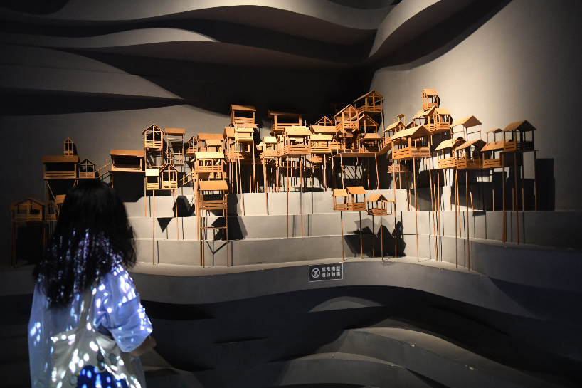 25日,市民在重庆规划展览馆参观,近距离感受山城变迁。图为展厅一角的吊脚楼模型吸引参观者。