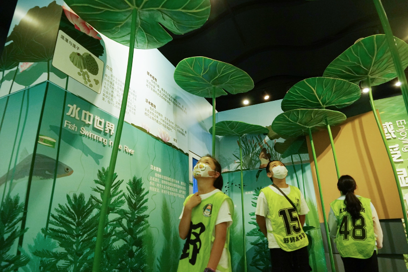 24日,青海西宁湟水国家湿地公园开展科普活动,小朋友看植物、观水鸟、了解湿地形成与保护,乐享周末时光。图为小朋友在青海西宁湟水国家湿地公园科普馆内参观。