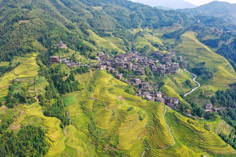 9月23日,航拍广西桂林市龙胜各族自治县龙脊梯田。(图片来源:中新社)