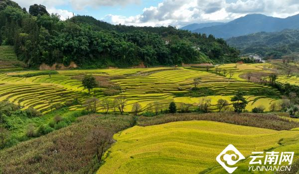 红河哈尼族彝族自治州建水县普雄乡的哈尼山寨龙岔村的梯田迎来丰收。(图片来源:云南网)