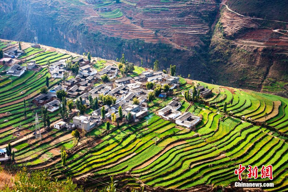 位于川滇两省六县(区)交汇处的会东县东德镇一碗水村的梯田。(图片来源:中新网)