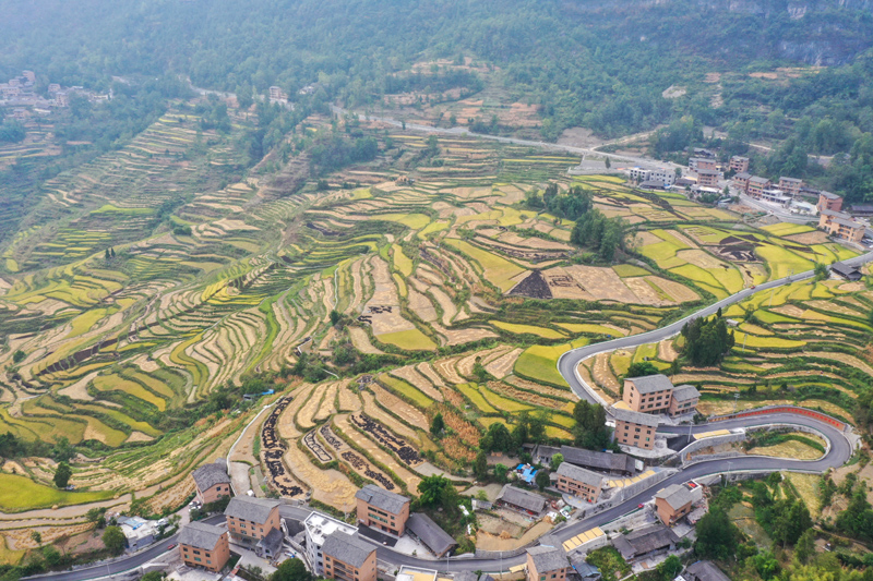 9月14日拍摄的重庆市酉阳土家族苗族自治县花田乡的梯田。(图片来源:新华社)