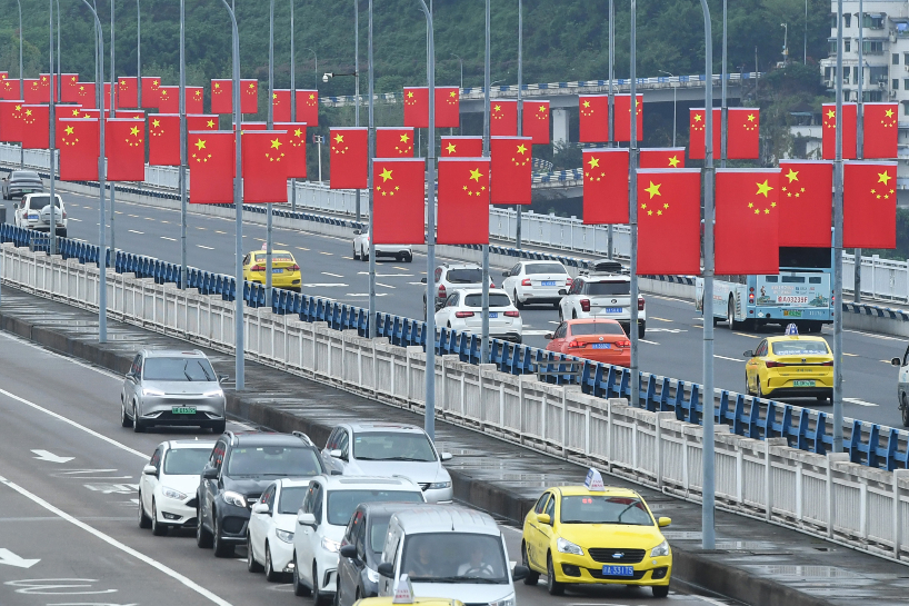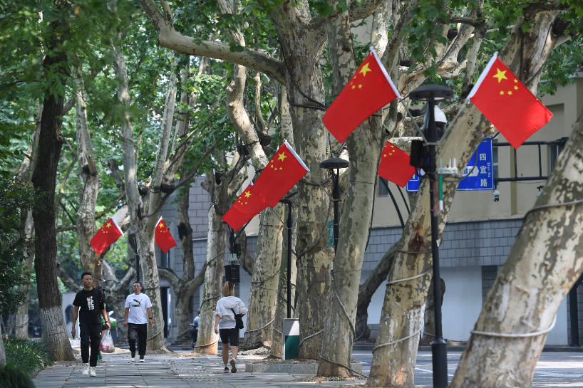 【欧洲时报网】国庆节临近,中国多地街头悬挂五星红旗,节日氛围渐浓。