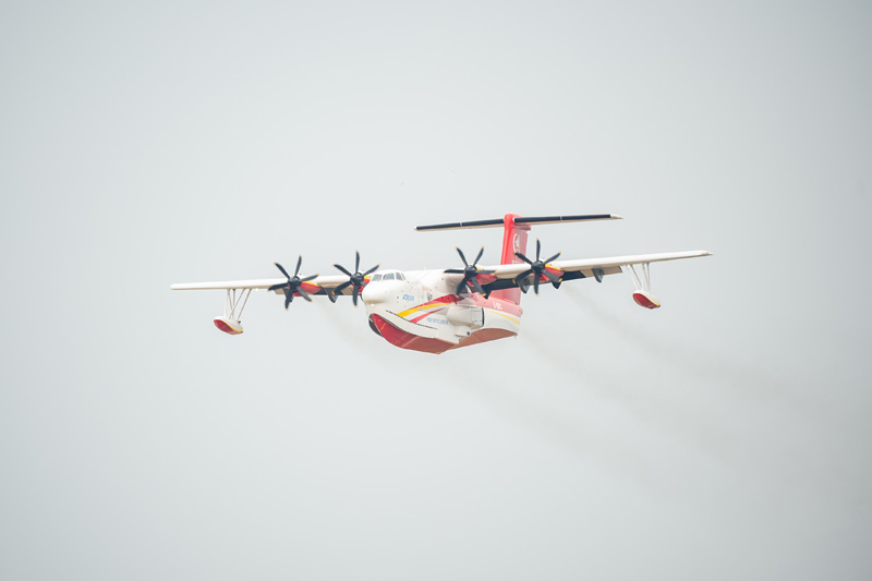 9月27日,“鲲龙”AG600M在空中飞行。(图片来源:新华社)
