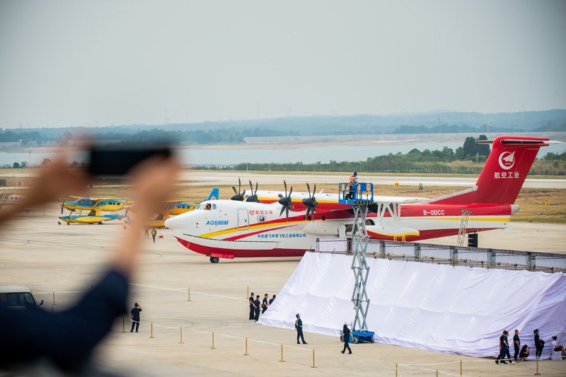 9月27日,“鲲龙”AG600M从漳河机场滑行起飞。(图片来源:新华社)