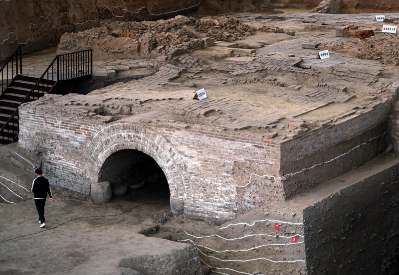 这是9月21日拍摄的开封北宋东京城州桥遗址。“考古中国”重大项目开封北宋东京城州桥遗址,发现不同时期遗迹遗存,实证开封“城摞城”奇观,见证中国古代城市文明演进的历史进程。截至目前,该遗址共完成发掘面积4400平方米,发现各类遗存遗迹117处,共出土各类文物标本60000余件,其中瓷器标本56000多件,遗址清理和保护工作还在进行中。
