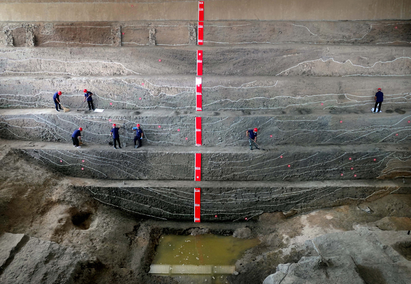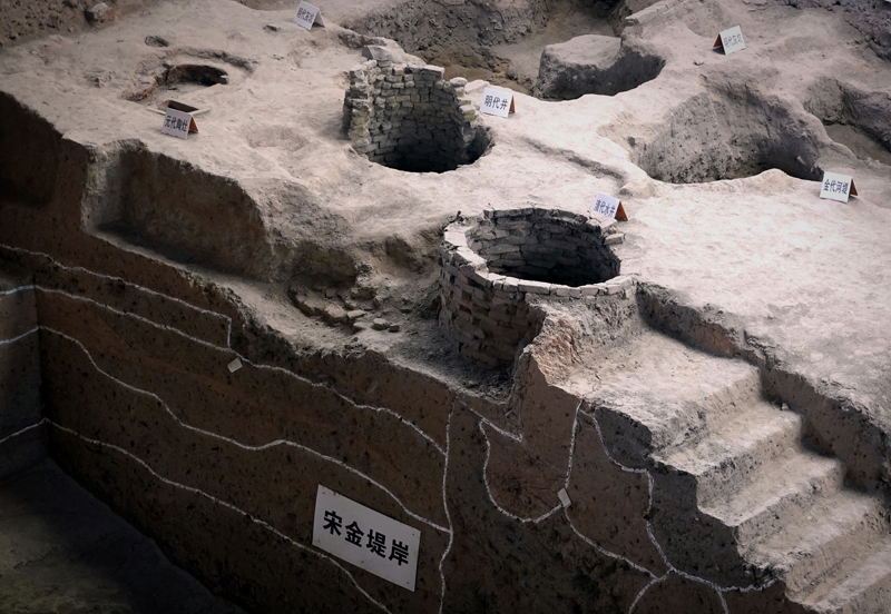 开封北宋东京城州桥遗址大运河(汴河)故道西壁剖面。