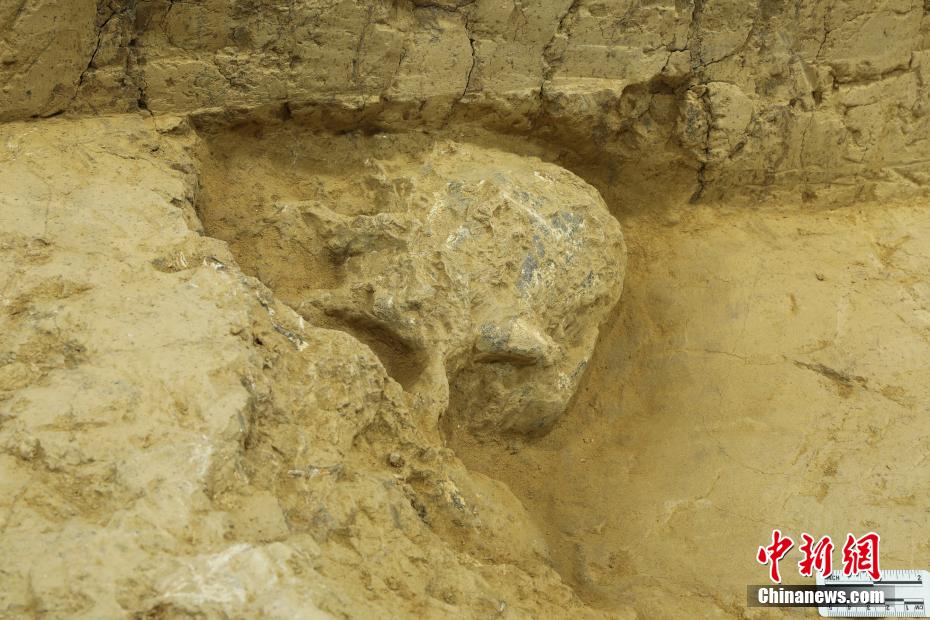 湖北十堰学堂梁子遗址,新发现1具古人类头骨化石——郧县人3号头骨。(图片来源:央视新闻)