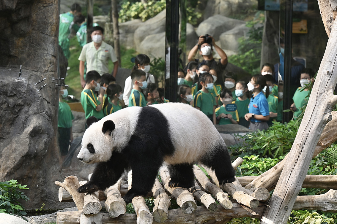 【欧洲时报网】9月28日,香港海洋公园为今年7月13日逝世的大熊猫安安举行植树活动,将安安的骨灰埋放在其故居“香港赛马会四川奇珍馆”前新种植的银杏树的土壤内,以示对安安的纪念。同时,香港海洋公园还邀请学生到场参与纪念活动,并让学生近距离观看大熊猫盈盈、乐乐,推广保育大熊猫的工作。