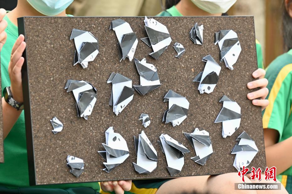 图为学生制作的大熊猫安安纪念折纸。 (图片来源:中新社)