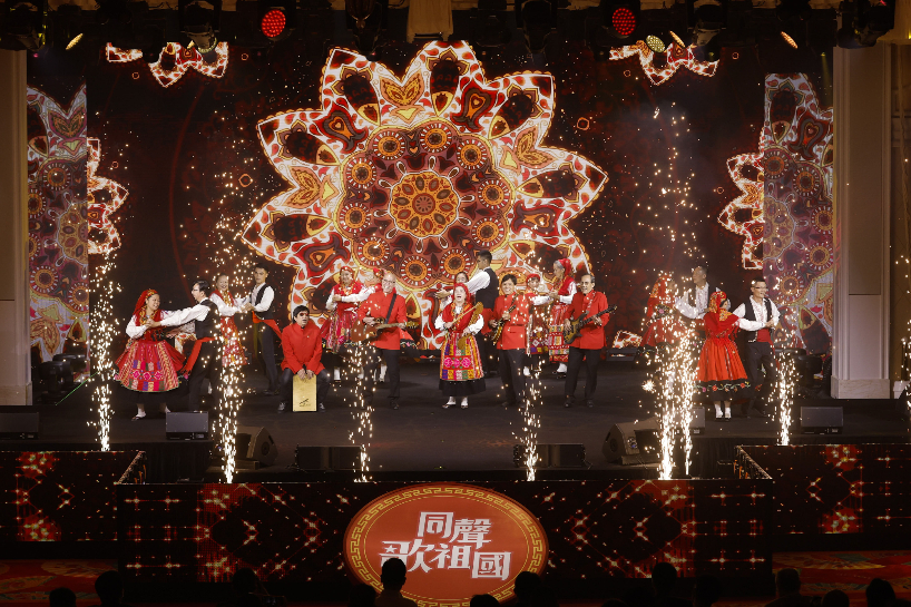 土生葡人组合澳门人乐队表演《绿色雀鸟》。(图片来源:新华社)