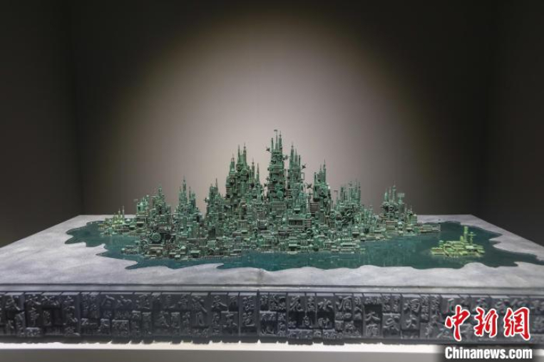 9月28日,“乘物游心”书画展暨数字艺术融合展在江西省南昌市东湖意库文化艺术中心正式开展。本次展览既有八大山人、傅抱石、徐悲鸿、齐白石等名家的木版水印书画作品,也有曹雨西,任远、方文山等当代艺术家们运用不同的艺术表现形式和技艺技法,将中国传统文化与数字科技碰撞出的精彩数字世界。图为展出的歌曲《东风破》的歌词装置艺术作品。(图片来源:中新网)