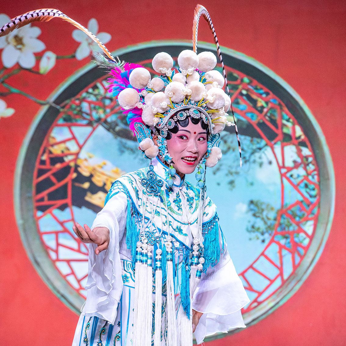 10月3日,民众在位于永庆坊的粤剧艺术博物馆观看粤剧表演。广州市荔湾区的永庆坊是具有广府文化风貌的街区,吸引民众在国庆假期前来游玩。(图片来源:本文图片除标注外均自中新社)