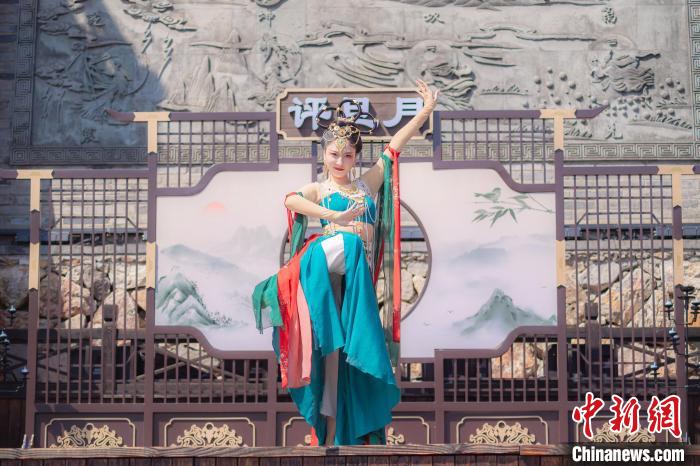 10月3日,在江苏省常州市茅山脚下的江南山镇东方盐湖城里,魏晋风华的音诗舞剧表演。(图片来源:中新网)