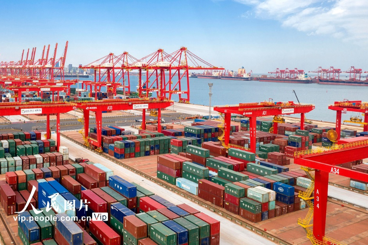 10月9日,山东港口日照港顺岸开放式全自动化集装箱码头一派繁忙。(图片来源:人民网)