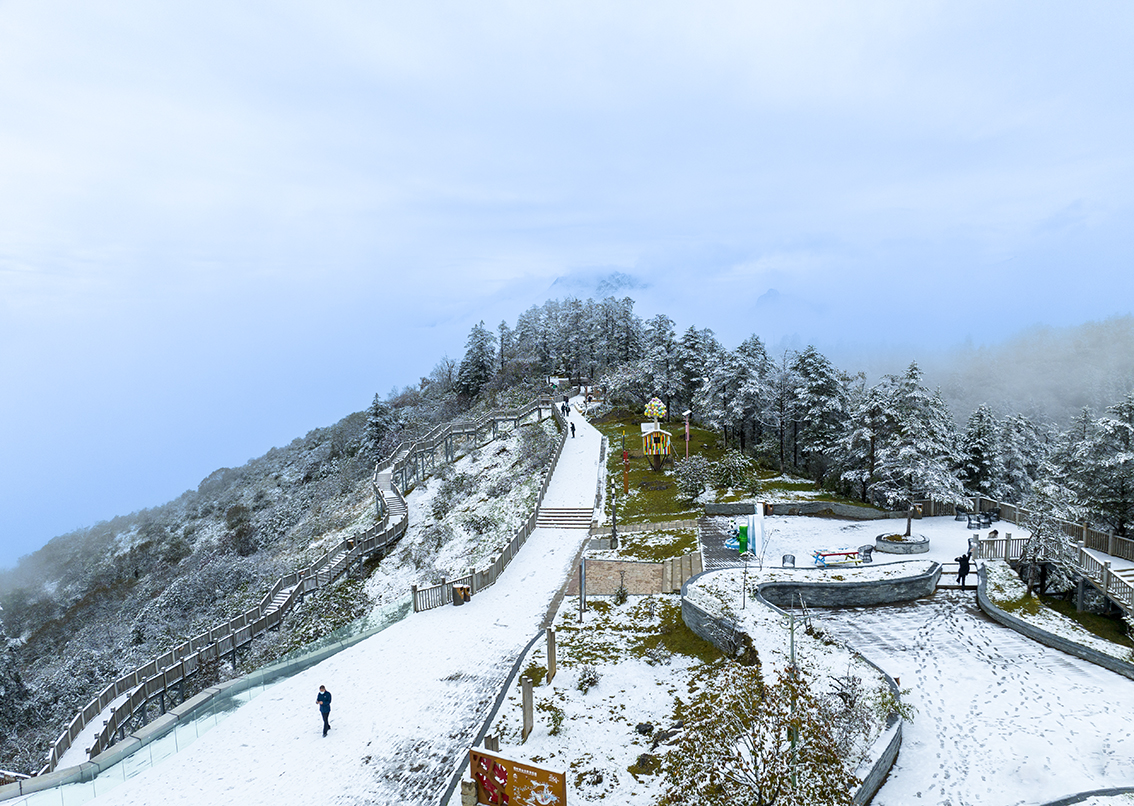 2022年10月9日晚,四川成都大邑西岭雪山景区迎来今年秋季首场降雪。(图片来源:中新社)