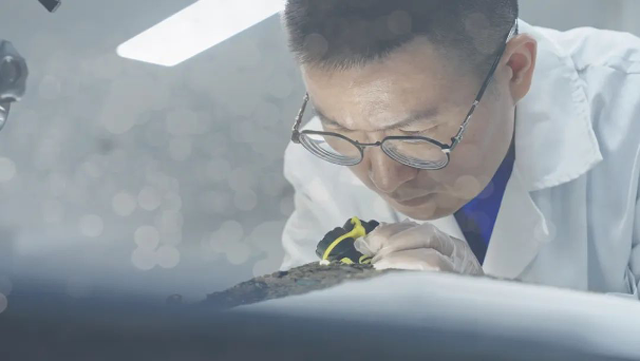 在寻找丝绸的同时,三星堆发掘现场也搭建好了所有的发掘舱,迎来了上海大学、四川大学、北京大学的考古团队,并在5号祭祀坑出土了本轮发掘的第一件黄金重器——黄金面具,当所有人的注意力都被黄金面具吸引,差不多同一时刻,负责此次丝绸实物寻找工作的四川省文物考古研究院文物保护研究所文博馆员郭建波,也终于有了收获,2021年1月31号,郭建波终于在显微镜下看到了明确的经纬组织。