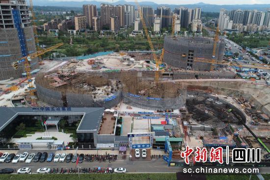 航拍建设中的四川天府新区独角兽岛园区项目全景。(图片来源:中新网)