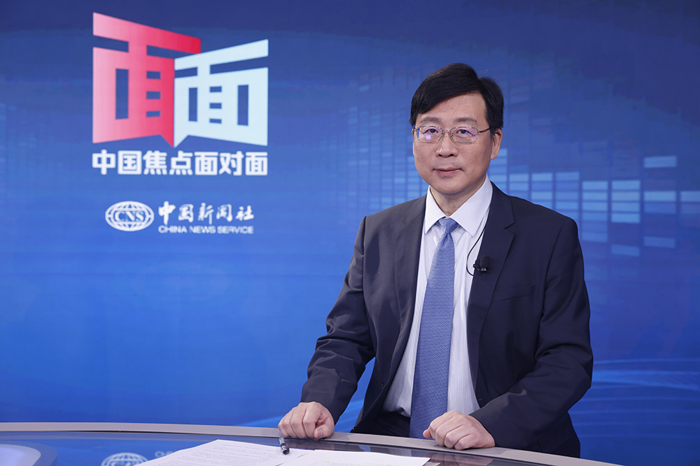 中国国家气候变化专家委员会副主任、中国科学院科技战略咨询研究院研究员王毅接受中新社“中国焦点面对面”专访。(图片来源:中新社)