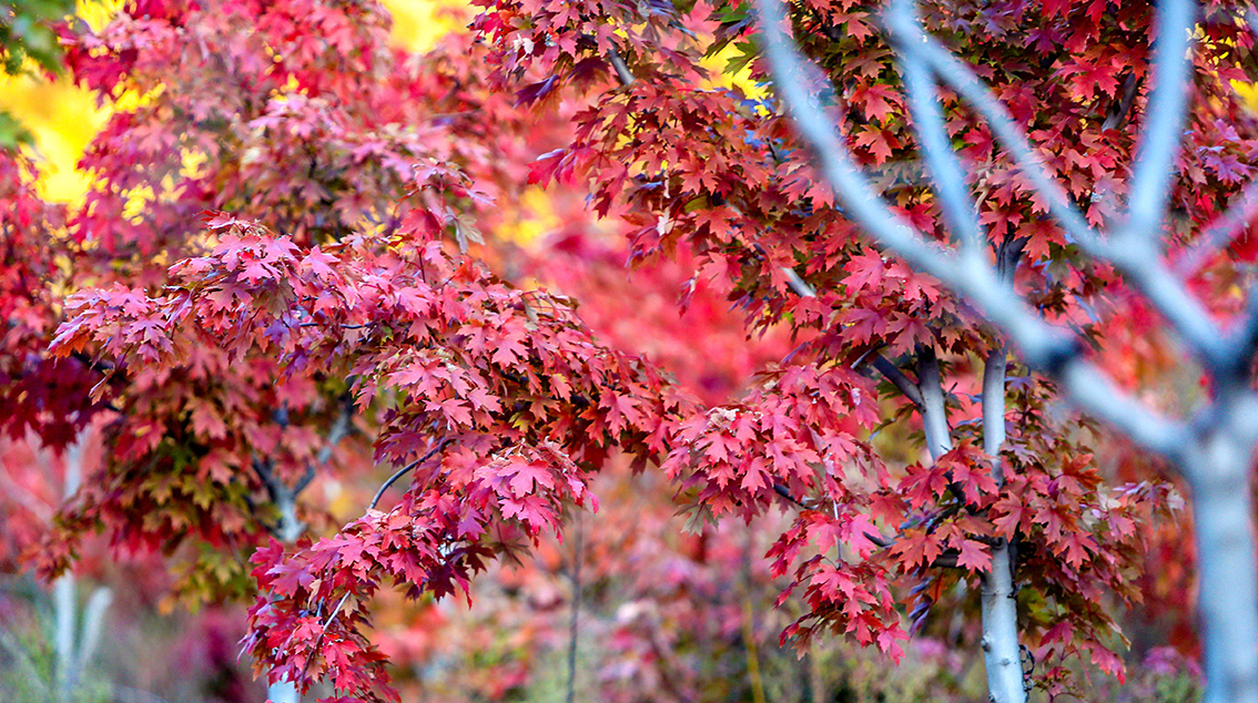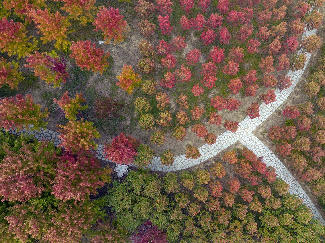 10月17日,山东日照,十月金黄秋意浓。在路边、在公园,火红枫叶、萦萦粉黛,秋色愈发绚丽起来。(图片来源:中新网)