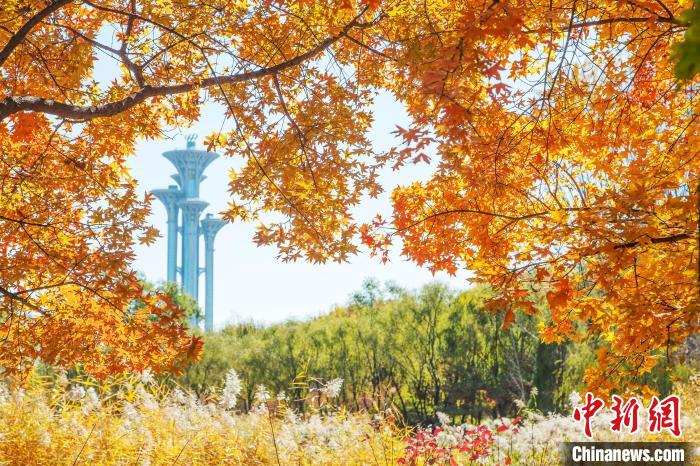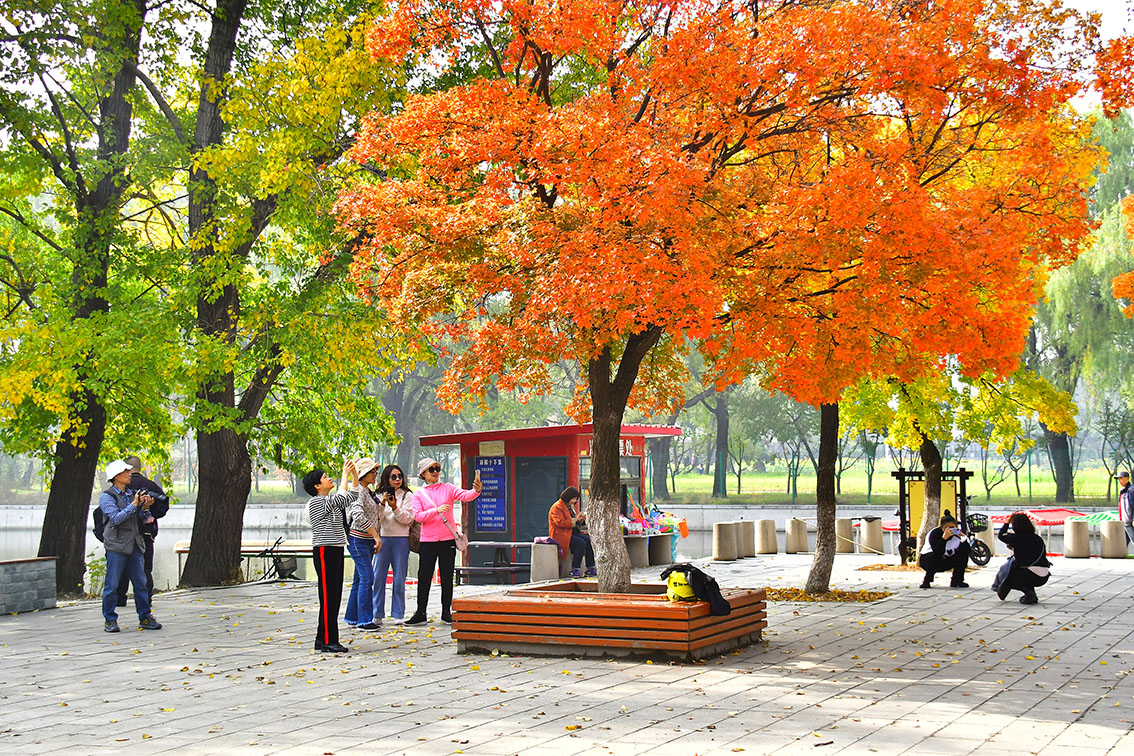 10月13日,北京各处彩叶陆续进入最佳观赏期。图为北京奥林匹克森林公园。(图片来源:中新网)