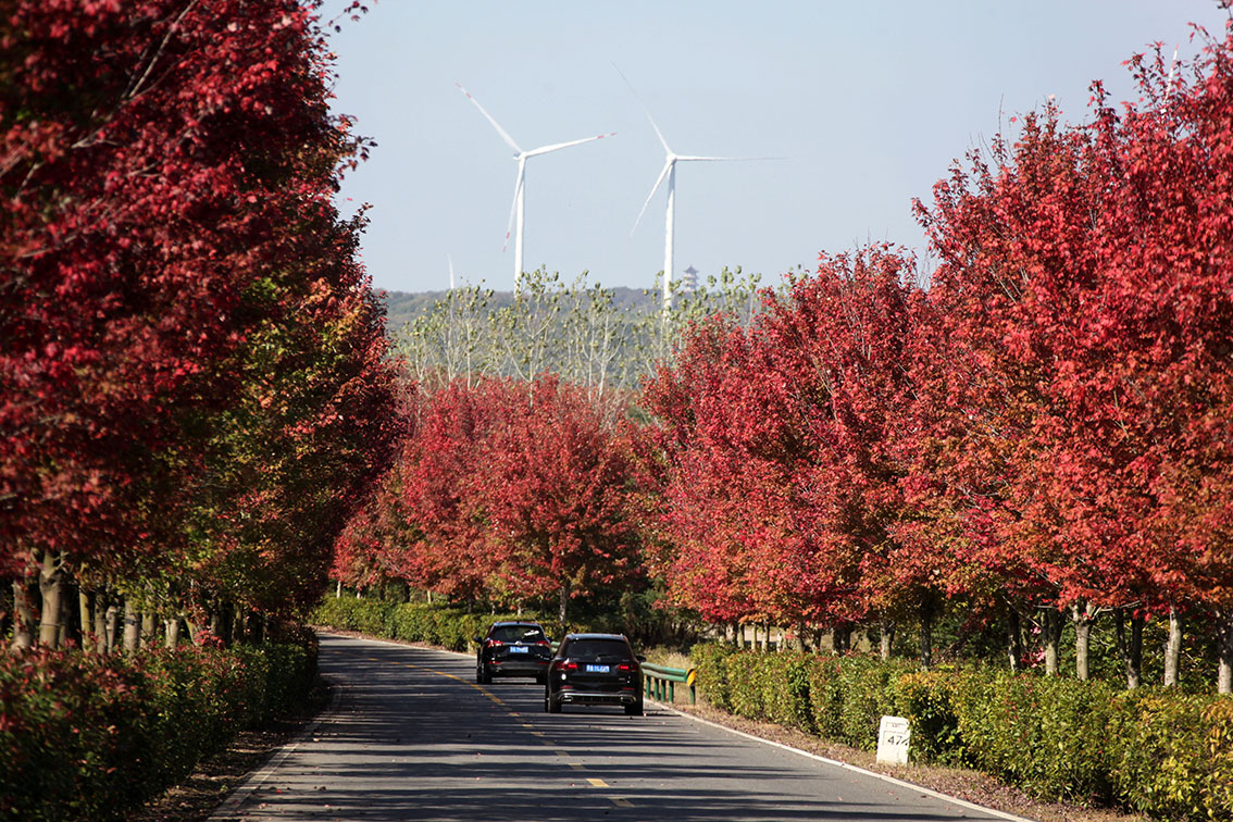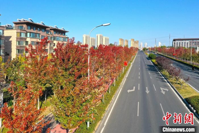 10月9日,深秋时节,河北省邯郸市鸡泽县的枫叶变红,层林尽染,呈现出迷人的“枫景”。