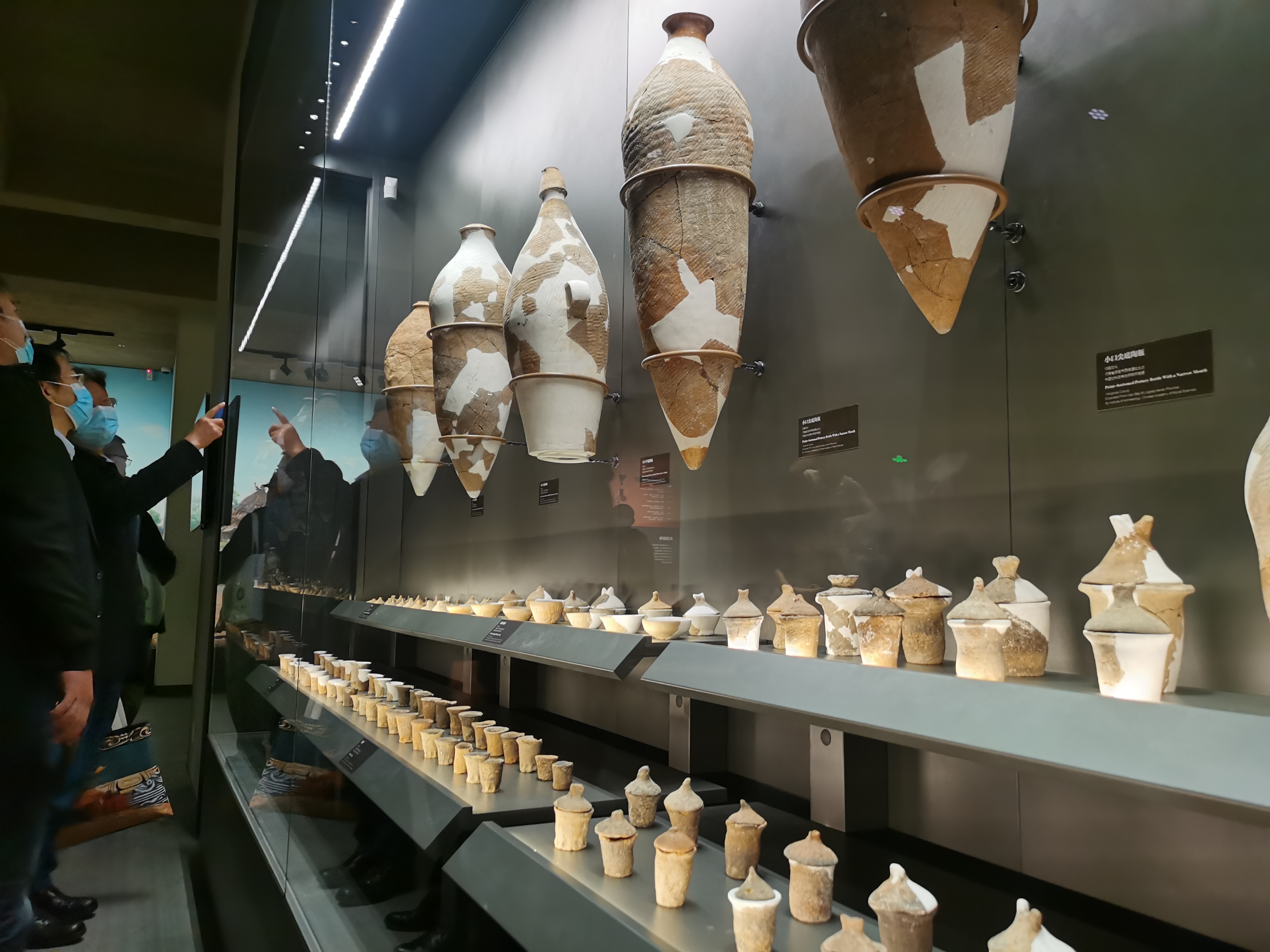 距今4000年前后,中原各地陆续进入龙山时代晚期,出现了登封王城岗、禹州瓦店、新密新砦等集中分布的中原城址群。距今3800年前后,偃师二里头遗址已基本可以确定为夏王朝晚期的都城遗址。资料图为参观者在二里头夏都遗址博物馆观看展出的陶器。(图片来源:新华社)