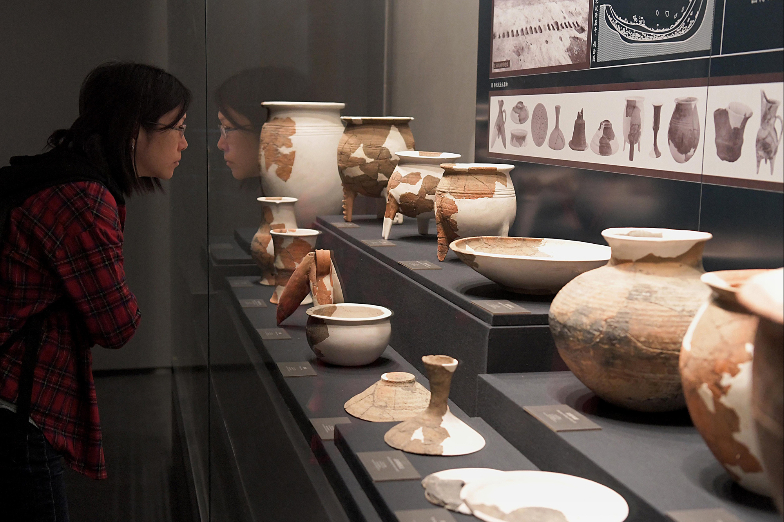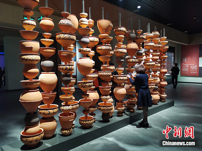资料图为河南三门峡市庙底沟仰韶文化博物馆展出的彩陶。(图片来源:中新网)