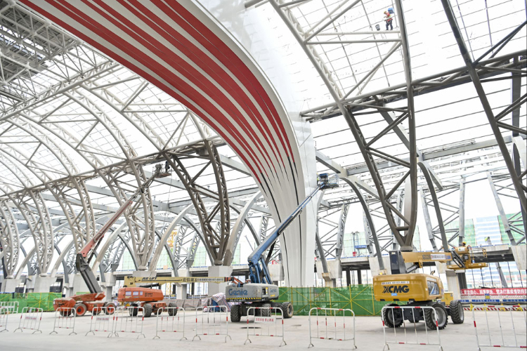 10月18日拍摄的广州白云火车站内施工现场。(图片来源:中新社)