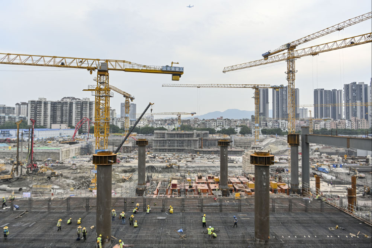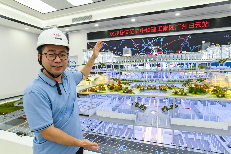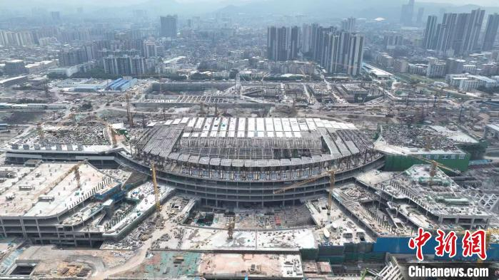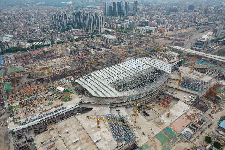 8月4日,广州白云火车站建设稳步推进,助力构建“轨道上的大湾区”。(图片来源:中国广铁集团供中新网)