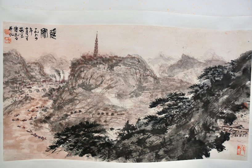 10月12日,由中国社会经济文化交流协会、中国香港文化体育旅游协会主办的“香港美术家、收藏家春风万里书画展”于香港上环文娱中心展厅举行传媒预览活动,书画展汇聚160多件明代、清代及近现代名家书画精品,以推广文化艺术交流,弘扬中国文化艺术。图为傅抱石的画作《延安》。(图片来源:中新社)