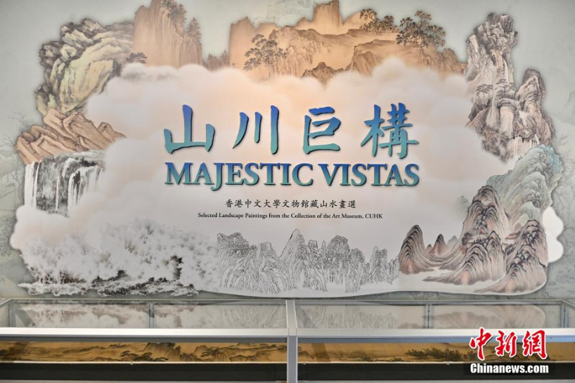 10月5日,香港中文大学文物馆举行“山川巨构:香港中文大学文物馆藏山水画选”传媒预览,展出逾40件尺幅宏巨及构图雄伟、横跨元代至当代的中国山水画作品,呈现中国山水画的多种风格与技法,让观众在展览中“游山玩水”,欣赏大自然及笔墨之美,引领观众从多角度理解和欣赏中国山水画。图为构图雄伟壮观的山水画。(图片来源:中新网)
