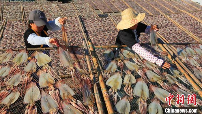 【欧洲时报网】眼下正值渔民收获的季节,为延长海货销售链和保质期,渔民们将适合风干保存的海货进行晾晒保存,丰收“晒秋”成为一道独特风景。