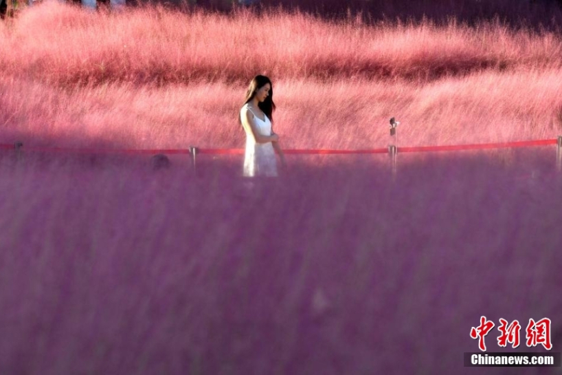 10日,游人在福州牛冈山公园观赏粉黛乱子草。(图片来源:中新网)