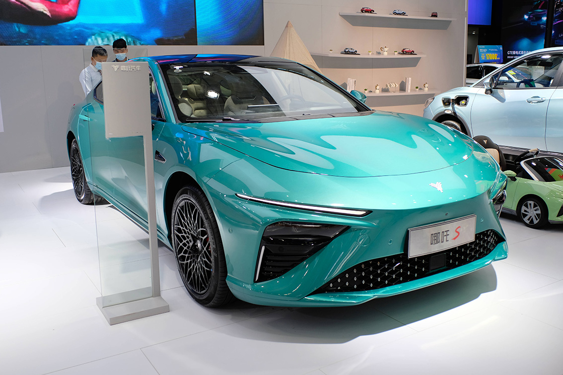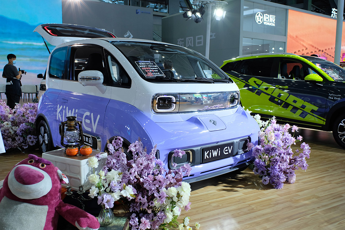 11月3日,在第十二届中国—东盟(柳州)汽车工业博览会上,一家汽车品牌展厅内的新能源汽车。(图片来源:中新社)