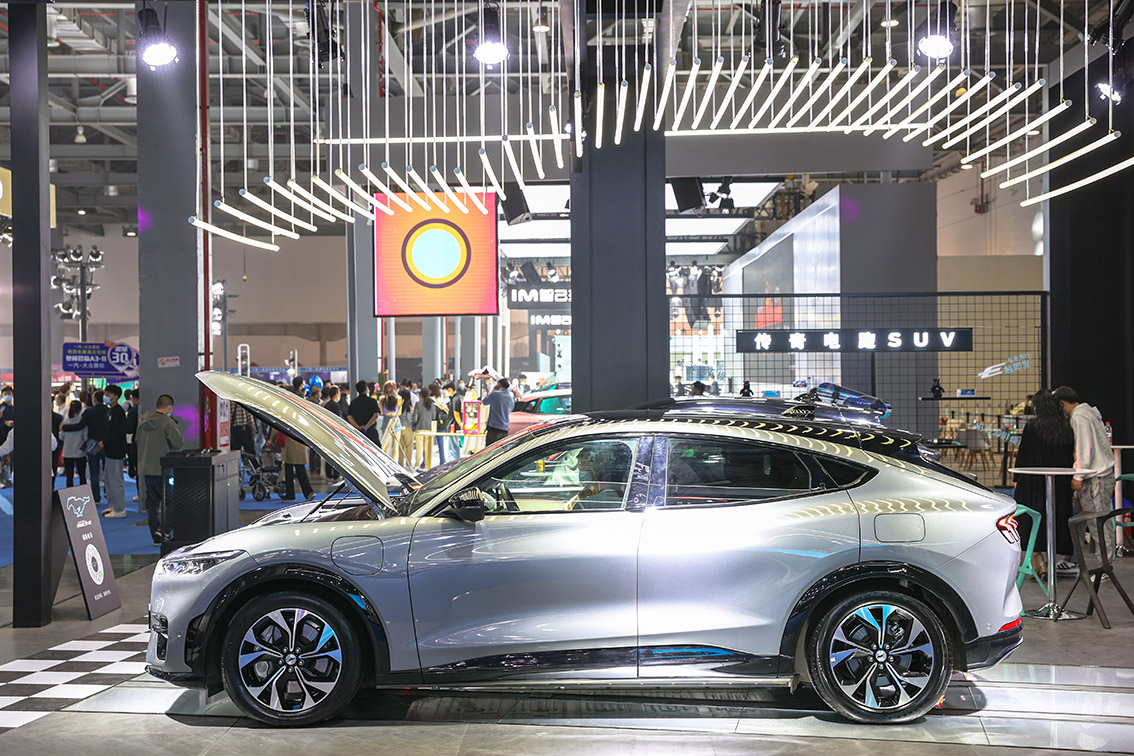 11月3日,2022第十七届南昌国际汽车展在江西南昌开展。图为车展现场展出的一辆电跑SUV。(图片来源:中新社)
