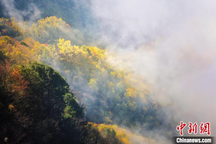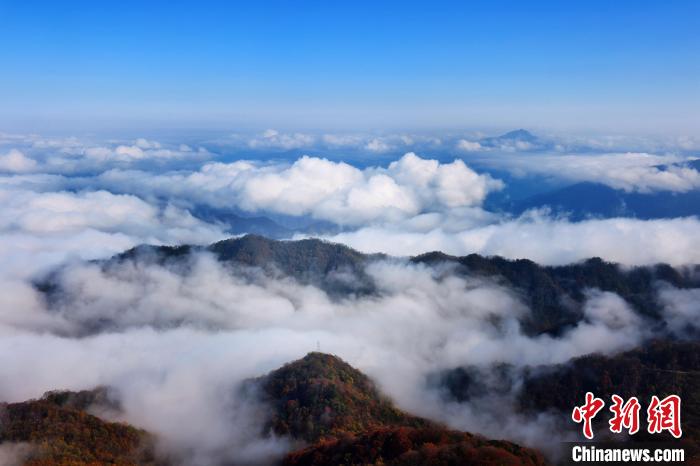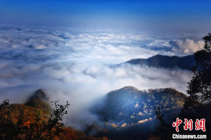 深秋时节,在海拔2267.4米的陕西安康市岚皋县南宫山国家森林公园,白云如潮水般翻涌在山峦之间。