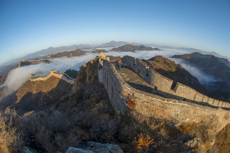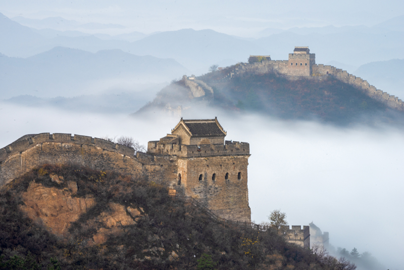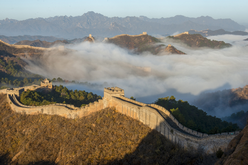 10月31日拍摄的金山岭长城云海景观。(图片来源:新华社)