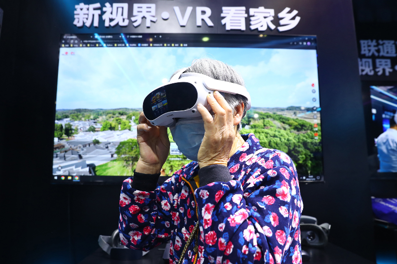一位七旬老人戴上VR眼镜观看沉浸感十足的自然风光。(图片来源:中新社)