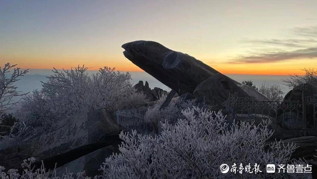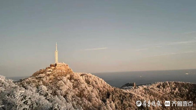 11月13日,泰山山顶,现入冬后第一场雾凇奇观。(图片来源:《齐鲁晚报》)