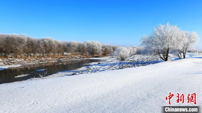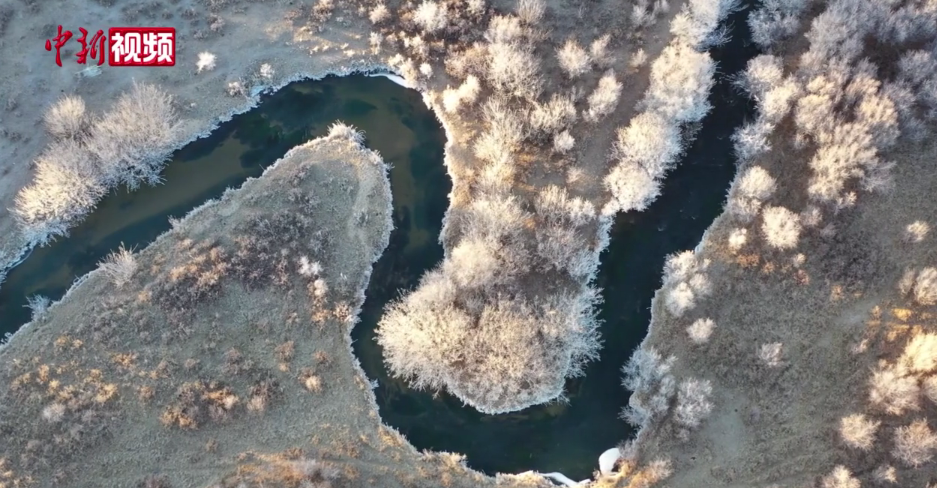 近日,河北承德坝上的御道口牧场管理区境内出现了雾凇美景。广袤的坝上雪原上,草木一夜间都扮成了银装素裹,仿若幻化为冰雪的童话世界。(图片来源:中新视频)