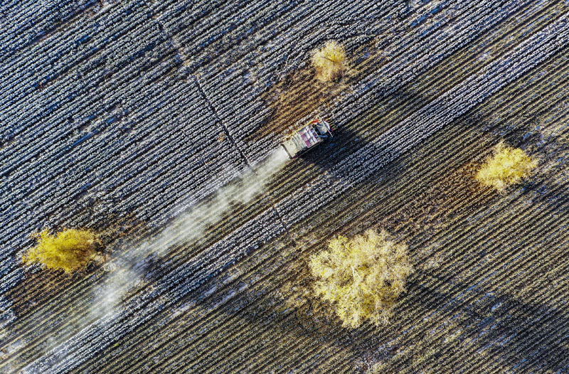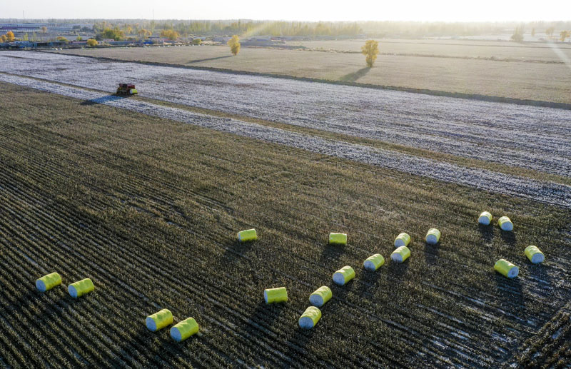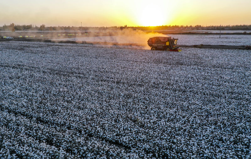 新疆产棉大县采收进入尾声 实现全程机械化